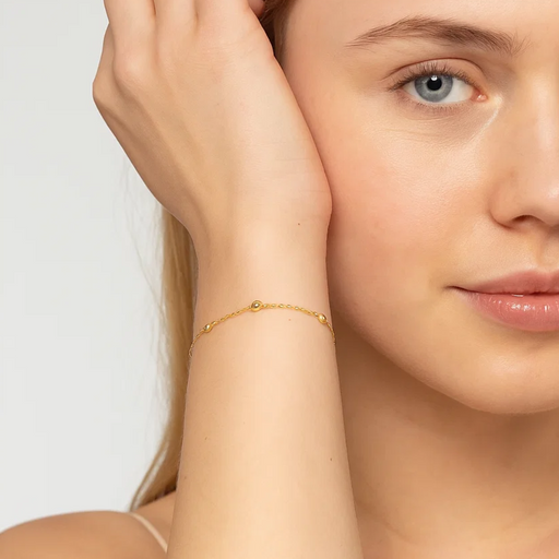 View full detailsElevate your everyday style with this delicate 18K gold-plated sterling silver bracelet, featuring sparkling cubic zirconia accents. The dainty cha...