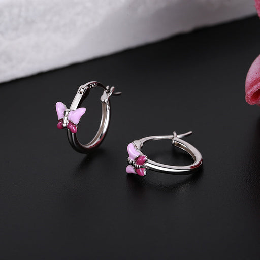 View full detailsAdd a touch of elegance to your jewelry collection with these **Sterling Silver Pink Lab Opal Butterfly Huggie Hoop Earrings**. Crafted from high-q...