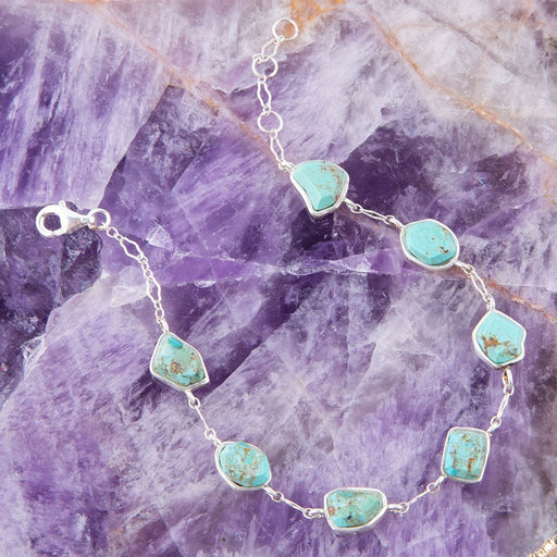 A classic, timeless beauty, this Turquoise and Sterling Silver Line Bracelet features genuine turquoise stones placed in sterling silver bezel and ...