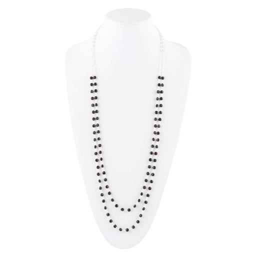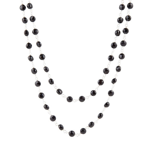 Add some colorful flair to your wardrobe with our genuine sterling silver and onyx necklace! Two rows of rosary linked faceted onyx creates a uniqu...