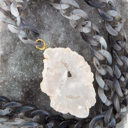 View full detailsAdd a touch of natural beauty to your look with our Natural White Druzy Marbled Resin Necklace. The genuine white druzy and resin chain is carefull...