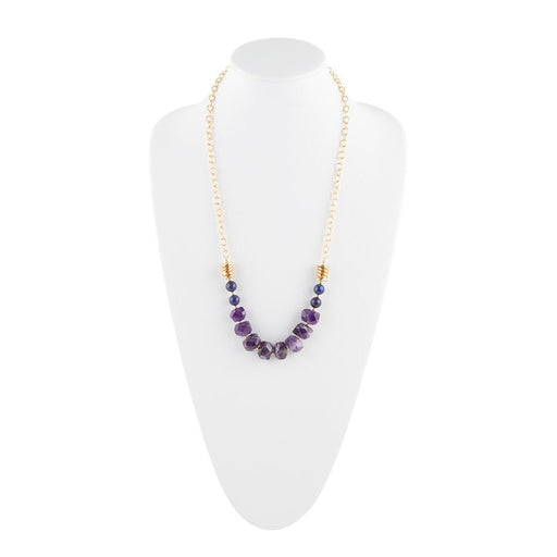 View full detailsGenuine Lapis and Purple Quartz. Gold Tone accents. Crafted and Finished by hand. 26" - 28" adjustable with 2" extender Chain and lobster clasp cl...