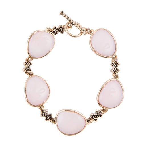 View full detailsShimmering genuine pink opal stones encased in golden bronze bezels make this toggle bracelet truly stunning. At 7.5" in length and .6" in width, i...