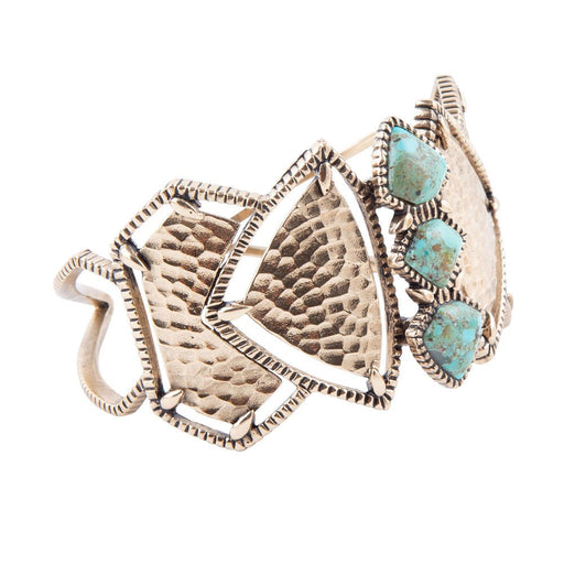 View full detailsShow off your personal style with this genuine turquoise and bronze cuff bracelet! The hammered texture adds sparkle and the shield design is an ey...