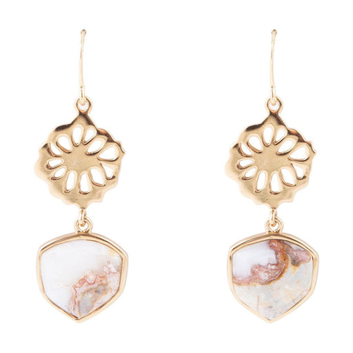 View full detailsGenuine idaho opal and bronze metal. Hangs 2" from ear wire. Opal is .5" in length and .5" in width. Crafted and finished by hand.