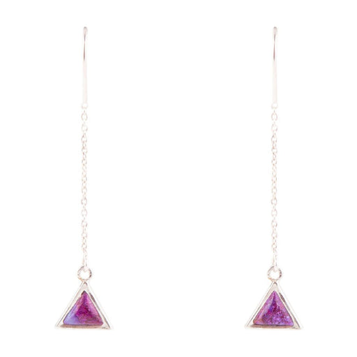 View full detailsElevate your look with these Triangle Threader Purple Tuequoise and Sterling Silver Earrings. Handcrafted with genuine Purple Turquoise, embedded w...