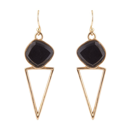 View full detailsThe Onyx Triangle Earrings are a unique statement of sophistication and class. Handcrafted with genuine onyx and bronze, the combination of black o...