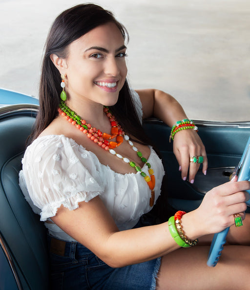 View full detailsExperience the stunning beauty of genuine blue turquoise, vibrant lime green turquoise, rich purple turquoise, bright orange coral, deep lapis, and...