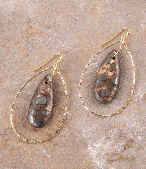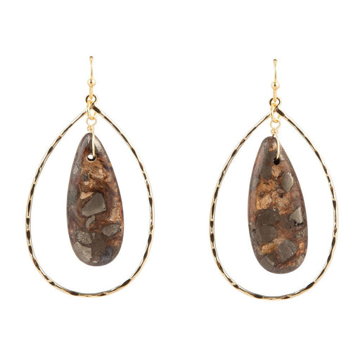 View full detailsPresent timeless beauty with these stunning Onyx Matrix Teardrop Statement Earrings. Crafted with genuine gold tone brass and eye-catching onyx mat...