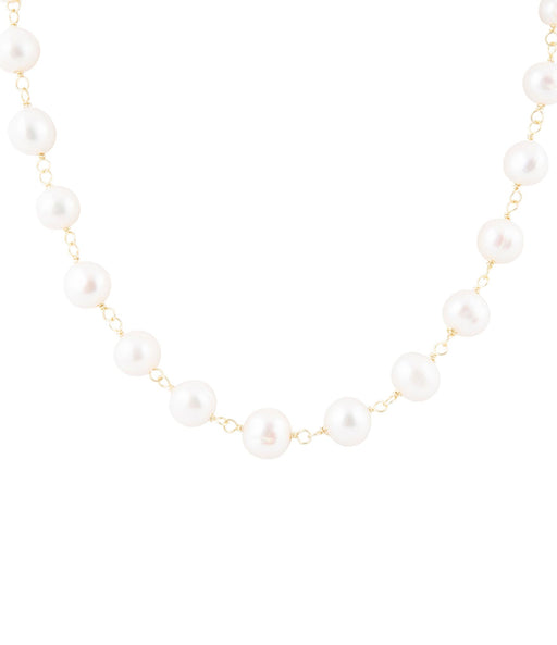 View full detailsHandcrafted and meticulously crafted, this necklace is made with a golden brass chain and adorned with beautiful white pearls. It measures 17.5" wi...