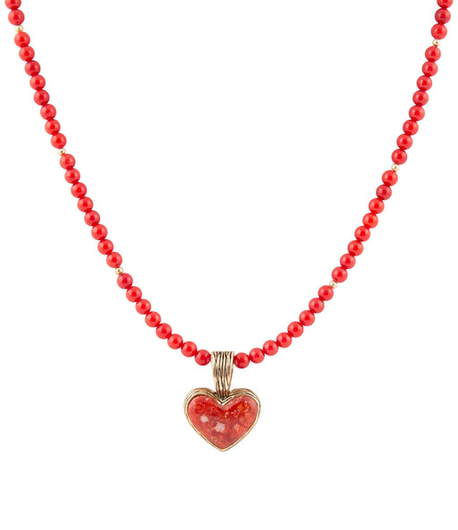 View full detailsThis necklace showcases a beautiful heart shape pendant, handcrafted with small red coral beads for a unique and elegant look. Measuring 16.5" in l...