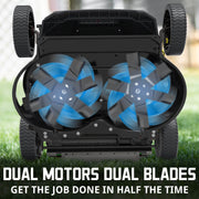 - 26-inch dual-blade mower delivers efficient lawn care.