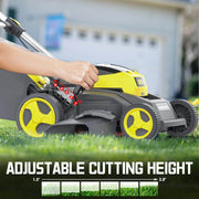 - Five-position height adjustment adapts to different lawn needs.