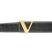 This alligator leather belt is highly popular for its outstanding tactile strength. This alligator leather belt is one of the strongest leather belts you can find in your wardrobe. Thanks to the naturally appearing oils in alligator leather, these keep the belt from cracking even in extreme weather conditions too.
