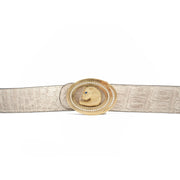 This alligator leather belt is highly popular for its outstanding tactile strength. This alligator leather belt is one of the strongest leather belts you can find in your wardrobe. Thanks to the naturally appearing oils in alligator leather, these keep the belt from cracking even in extreme weather conditions too.