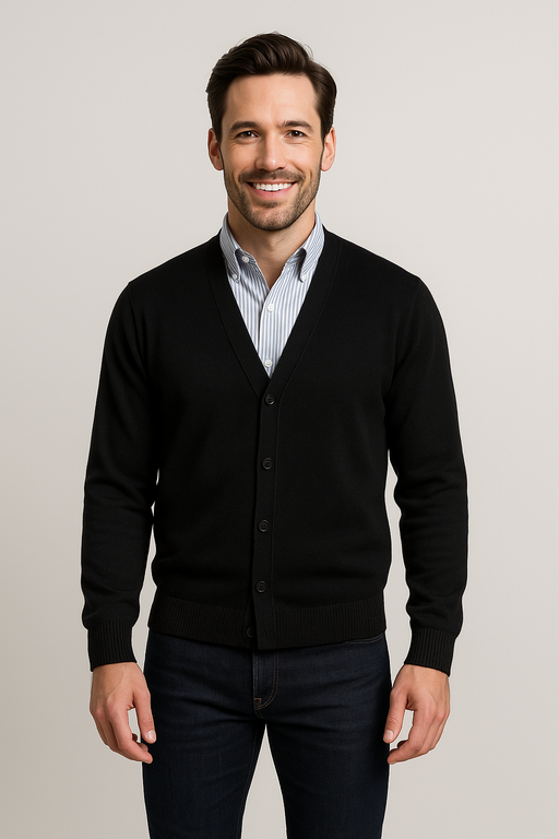 View full detailsSoft charcoal cardigan made from premium merino wool. Features button front, ribbed trim, and pockets. Lightweight, warm, and ideal for layering at...