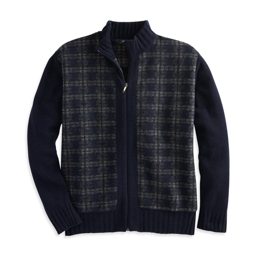 View full detailsAdd sophisticated style to your wardrobe with this plaid sweater jacket. With its full-zip closure, deep color, and ribbed finish on the neck, wris...