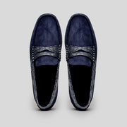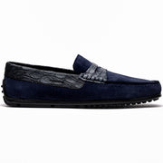 31-160-NVY MONZA Sueded Calfskin with Crocodile Driver, Navy
