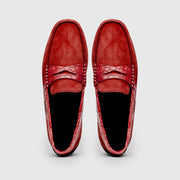 31-160-RED MONZA Sueded Calfskin with Crocodile Driver, Red