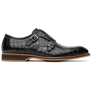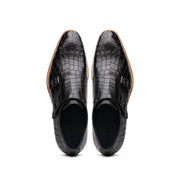 55-112-BLK LEGERRA Hand Burnished Crocodile Print Monkstrap Black