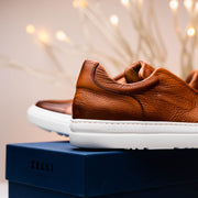 65-225-CGN SPETTACOLARE Italian Pebble Grain Calfskin Sneakers Cognac