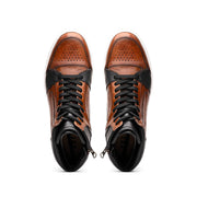 65-356-BRN BRAVO Italian Burnished Calfskin High Top Dress Sneaker Black / Brown