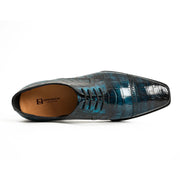 Crafted for the discerning gentleman, this Norwegian-Stitched Derby Shoe redefines luxury with its Zimbabwe Nile crocodile leather upper, hand-selected for its dramatic scale patterns and rare blue-black ombr finish. Each pair showcases the artisanal Norwegian welt construction?atriple-stitched with Gutermann royal-grade thread for unparalleled durability and a bold, textured profile.