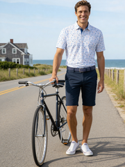The new Beachside polo has a fun multi color print. The lightweight breathable and stretch fabric offers great mobility for your golf swing and a great look for your lifestyle. This fabric is so lightweight it’s like wearing nothing and will keep you cool on those hot summer days. Contrast color inside collar and placket offers enhanced styling on our solid polos and unique full patterns on the others.