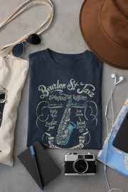 Immerse yourself in the enchanting world of New Orleans jazz with TABOO's Bourbon Street Jazz Saxophone T-Shirt. This captivating shirt celebrates the soulful melodies and vibrant energy of Bourbon Street, while paying tribute to the iconic instrument that defines the jazz genre.