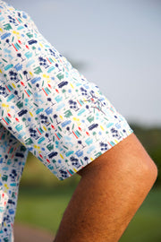 The new Surfs up polo features great color pops and icons. The lightweight breathable and stretch fabric offers great mobility for your golf swing and a great look for your lifestyle.  This fabric is so lightweight it’s like wearing nothing and will keep you cool on those hot summer days. Contrast color inside collar and placket offers enhanced styling on our solid polos and unique full patterns on the others.