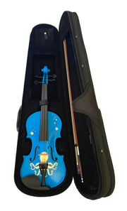 Whether you're a beginner or an experienced player, the Octopus Bling Blue Violin Outfit w Brazilwood Bow Case Crystal Fine Tuners Rosin Strings Set Up meets MENC standards for playability and quality, making it a perfect choice for creative multi-style string play. Available in sizes 4/4, 3/4, 1/2, and 1/4, there’s a fit for everyone!