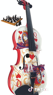 Experience the enchanting sound and stunning design of the Queen of Hearts White/Red Violin Outfit w crystal fine tuners and an unforgettable design, it includes a white carbon fiber bow on 4/4 size, rosin, strings ruby red crystal fine tuners and set up. This exquisite violin outfit is perfect for musicians who appreciate a blend of style and functionality. Crafted with high-quality tonewoods including maple, spurce and ebony, the Queen of Hearts violin produces a rich, resonant tone, making it ideal for a variety of musical genres.