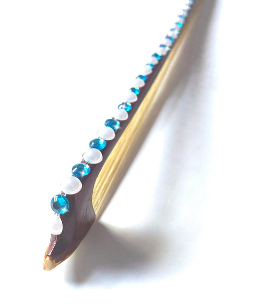 View full detailsStrike a chord of elegance with Rozannas Blue Bling Violin Bow, adorned with hand-applied aqua blue crystals and crafted from quality Brazilwood fo...