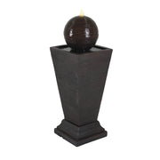 This tall column fountain is designed for outdoor spaces such as gardens and patios. Its elegant dark brown concrete construction integrates function with a retro style to enhance any exterior setting.