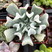 Meet the Echeveria Topsy Turvy, a whimsical succulent with a playful twist! Its silvery-blue leaves curl upward and inward, creating a unique, twisted rosette that’s both eye-catching and charming.