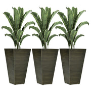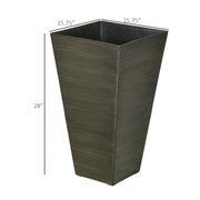 This set of three tall outdoor planters features a stylish wood grain design, perfect for enhancing your garden, patio, or indoor space. Their extra tall shape accommodates deep-rooted plants, combining function with an elegant look.