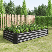This metal raised garden bed is designed for outdoor gardening, ideal for backyard planting or flower beds. Its rectangular shape brings tidiness and functionality to any garden space.