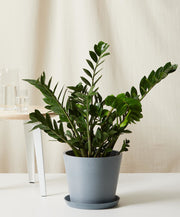 With graceful layered leaves, the hardy ZZ Plant is a statement plant that can reach up to 2.5 feet tall. This drought-tolerant plant is tough, beautiful, and nearly indestructible.