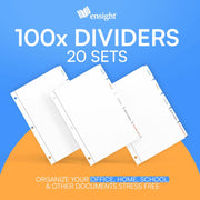 - Assorted 5-tab page dividers ready to fit almost all 3-ring binders.