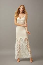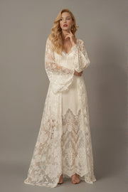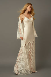 Chantilly Lace Long Robe with Silky Satin Lace Nightgown - next day shipping