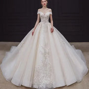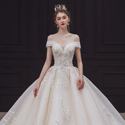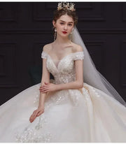 Luxury Off-Shoulder Wedding Dress - Handmade Lace Ball Gown | Femstylo