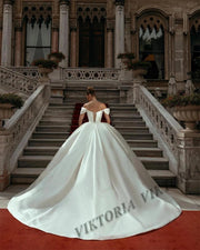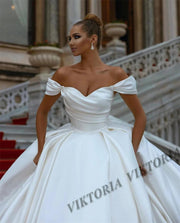 Off-Shoulder Satin Ball Gown Wedding Dress - Princess Style
