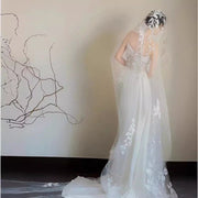 Satin Lace Wedding Veil Tube Top Fishtail Wedding Dress