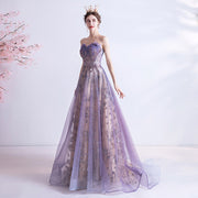 Strapless Purple Sequin Starry Dress Wedding Dress