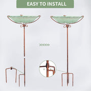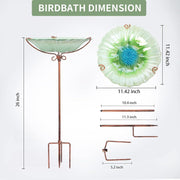 26 Inch Height Glass Birdbath Birdfeeder with Metal Stake Garden Outdoor Green