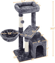 Our 34in cat tree is an ideal home for pets, exploring the living space relationship between people and pets. Let your lovely cat stay in the castle and enjoy the dream cat house. Our cat tree has a sense of value, texture, and functional quality. It is specially designed for high-end cat houses, providing your cat with a perfect resting and entertaining space.