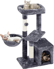 - 【Well-furnished house】 Your cat will have a good place to play and sleep. Well-furnished and solid, this cat house is suitable for several kittens or one normally-sized adult cat, not suitable for large-sized cats. For safety, please do not overload the cat tree.