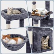 - 【Protection of furniture】Cats are active and lively, so the cat tree has a scratching board and three posts to let them sharpen their claws, which are made of sisal ropes, natural and durable. These are good substitutes to protect your sofa/bed from their claws.