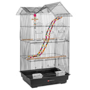 Bird lovers rejoice, your feathered babies are going to love their new home! This 36in Bird Cage features a collection of coated iron fencing, eco-friendly feeders, polished wooden toys, and a non-toxic frame for maximum quality and security. 36 inches of vertical space is perfect for small to medium birds to stretch their wings. This enclosure is ideal for parrotlets, lovebirds, parakeets, and cockatiels. 100% non-toxic, and weather-resistant materials protect your bird from injury. 4 easy-locking doors make for safe and easy feeding. A plastic tray slides out for easy cleaning and comes with a floor grate to prevent any unscheduled flights during cleanup. This cage isn't all business though, we can't forget the toys! Multicolored toys turn your feathered friends' home into a playground! From any angle, this cage is going to be a safe, secure space for your birds to enjoy themselves for years to come
