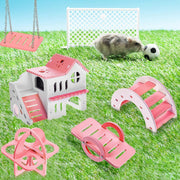 - Suitable size: the size of hamster house is 6.3 x 3.93 x 5.5 inch, the rainbow bridge is 5.5 x 2.75 x 3.15 inch, the seesaw is 5.1 x 2.75 x 2.36 inch, the swing is 3.5 x 2.8 x 5.5 inch and the exercise circle is 4.92 x 4.92 x 4.92 inch; The set contains screwdriver and screws, which are more stable and not easy to fall off, suitable for small hamsters, mice, gerbils and other small pets
